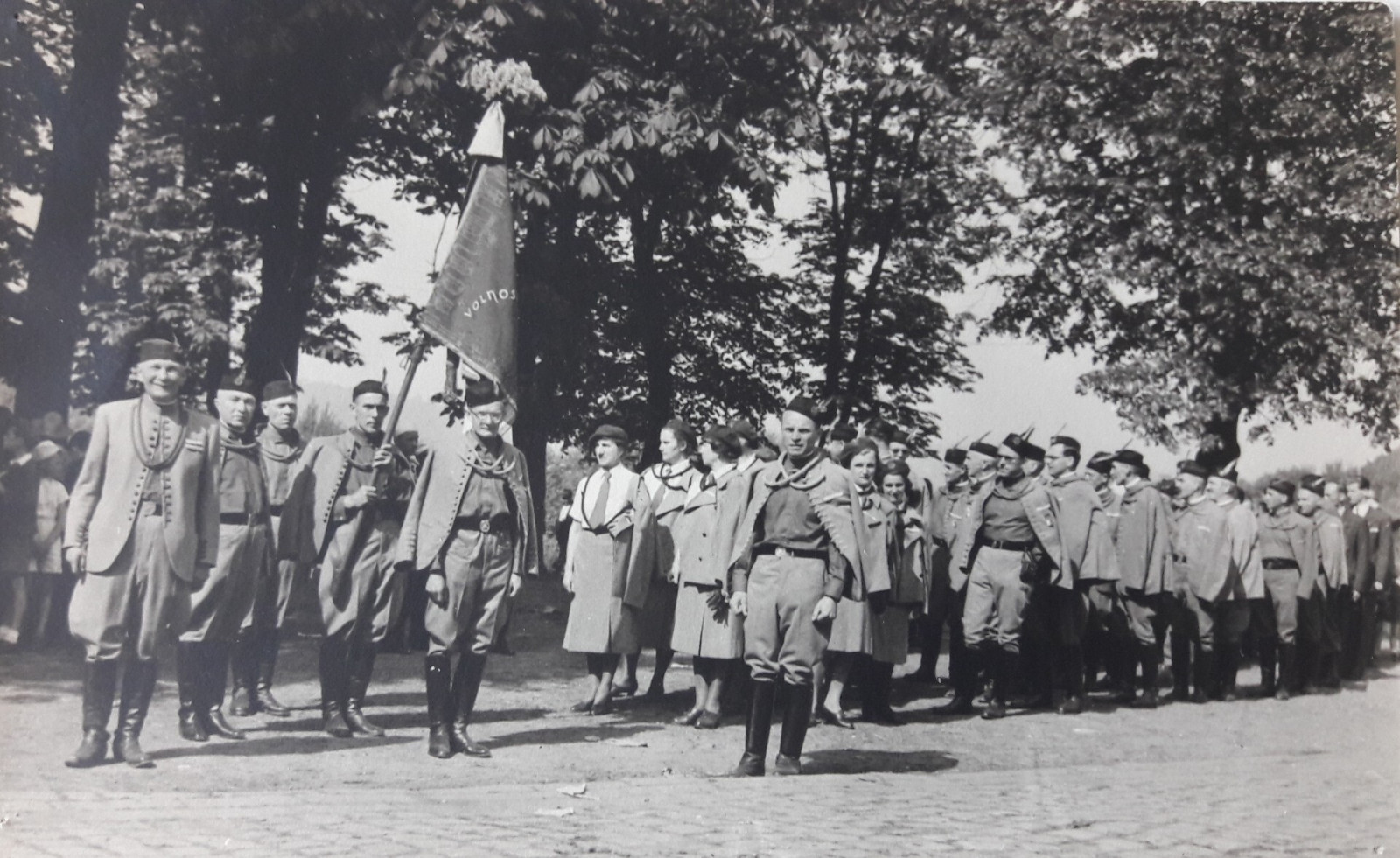Průkopnice ženského tělocviku a sportu ve Dvoře Králové n. L.19 Sraz sokolstva po válce v květnu 1945, první žena zleva V. Bierová.jpg