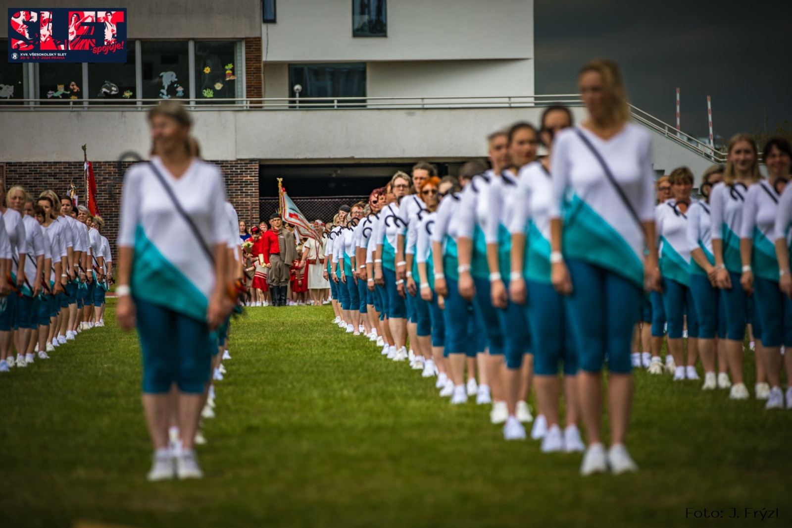 Krajský sokolský slet nabídl v prudkém dešti desítku sletových skladeb.