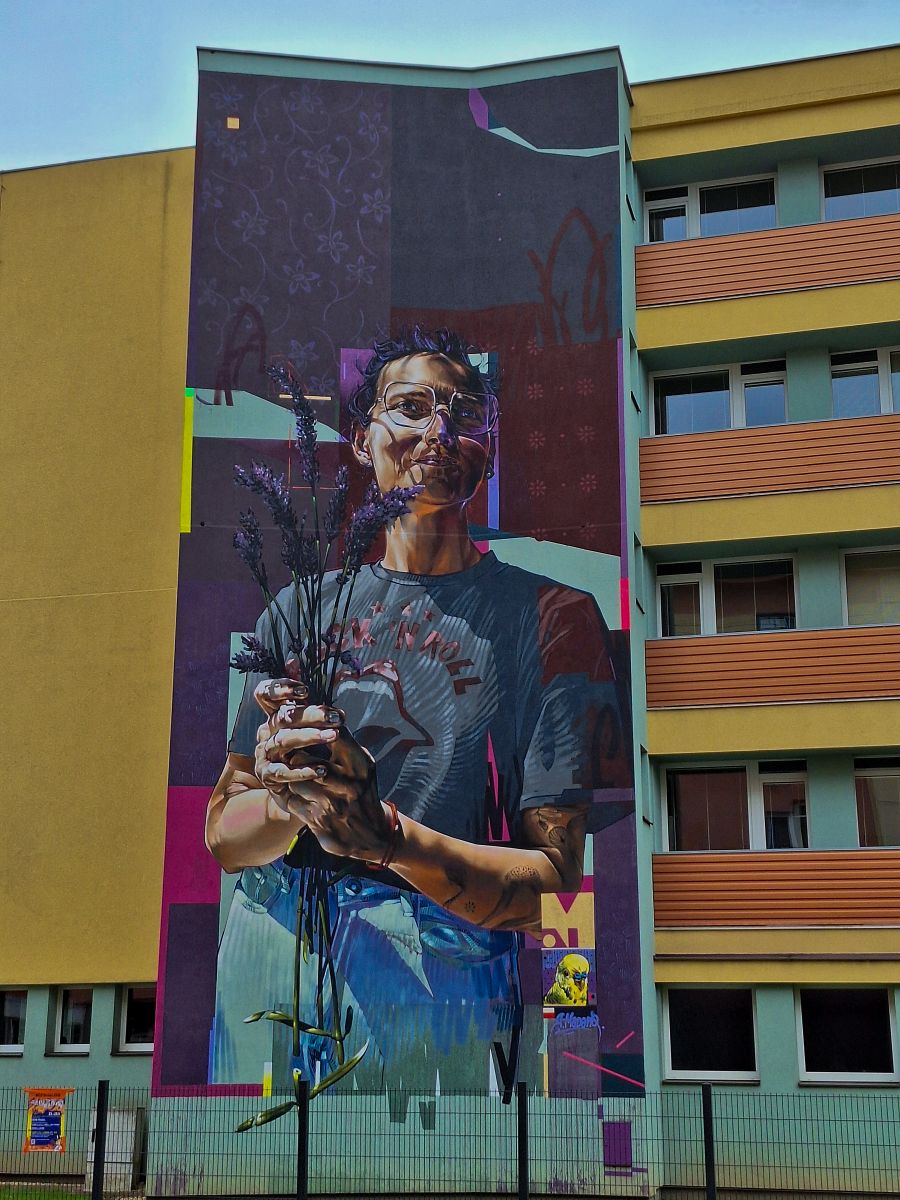 Vysvětlení díla Dívka s levandulí - mural ve Dvoře Králové