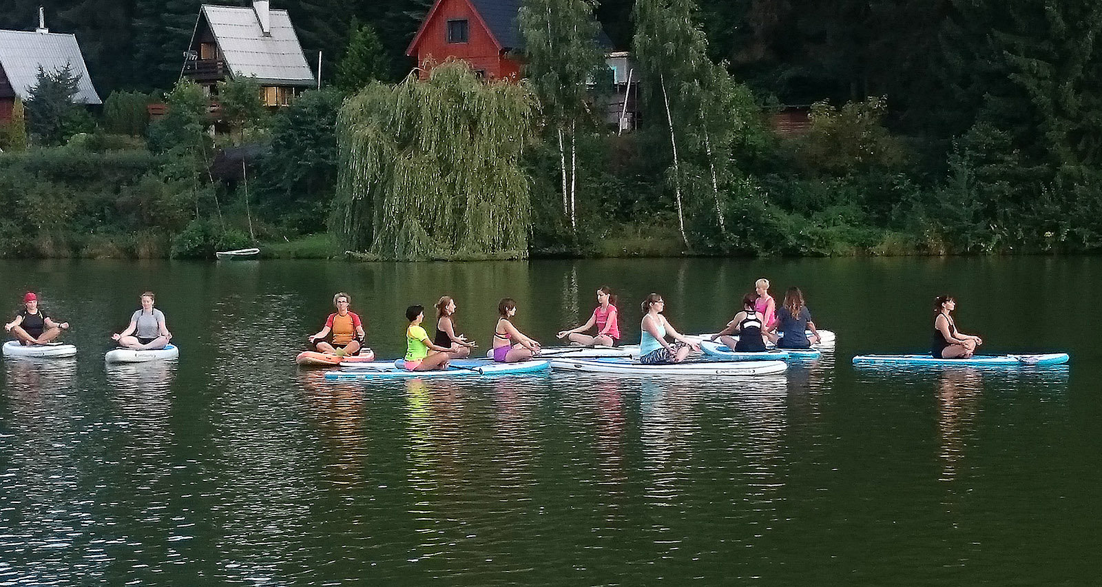 Joga na paddleboardu oživila hladinu rybníku v Dolcích