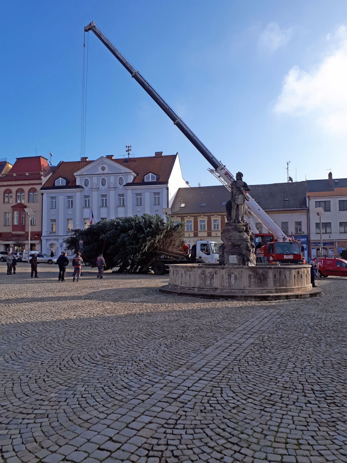 Instalace Vánočního stromu na náměstí ve Dvoře Králové nad Labem