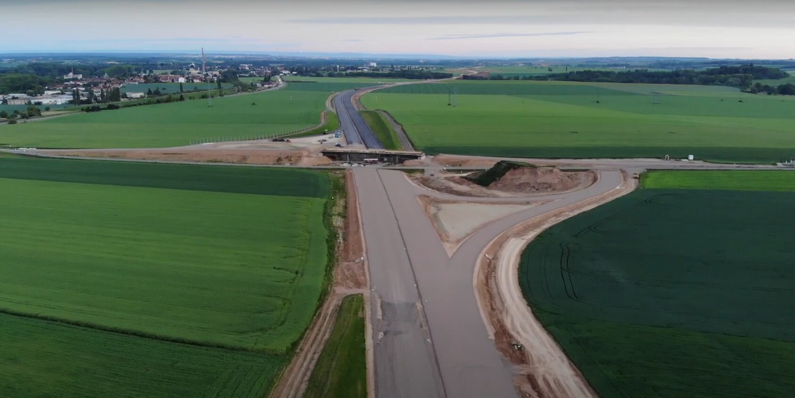 Na dálnici z Hradce do Jaroměře už se pokládá asfalt. Podívejte se na video z dronu.