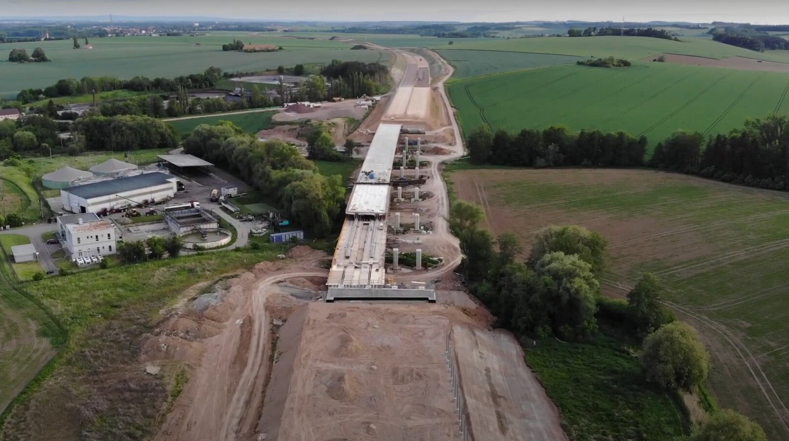 Na dálnici z Hradce do Jaroměře už se pokládá asfalt. Podívejte se na video z dronu.