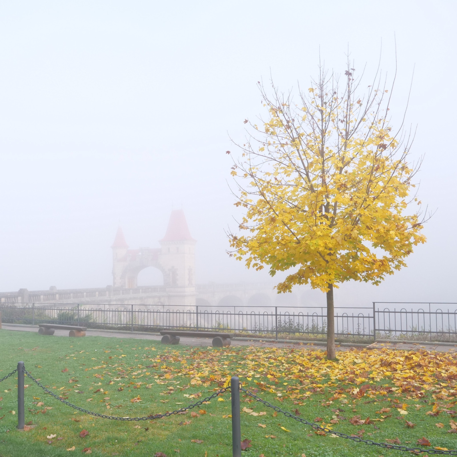 Přehrada Les Království v mlze